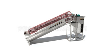 原理 : 由中心軸帶動攪龍的旋轉將原料沿軸向上輸送,靠原料之間及原料與攪龍的磨擦而起清洗作用。該機具有提升功能,可以將物料由地面提升到下一工序進料口。(本機也可采用變頻調速,既可以控制物料的輸送量大小,也可以起到定量輸送的功能,耗電量不到2度)。
