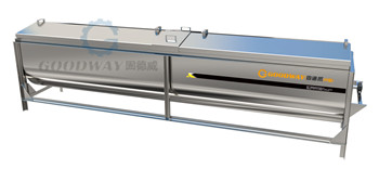 2、強力清洗機原理:采用的是在主軸上面安裝了多個攪拌槳葉特別適合于長塊莖狀物清洗的的設備。它利用仿生學原理,綜合了攪拌,摩擦,揉搓。拋起,撞擊等多種清洗手段,能把長塊莖狀物料蟲眼內泥沙清除干凈,而不損傷物料;并能定時排除泥沙,石塊及鐵器,是長塊莖狀物料及薯類清洗過程中的重要設備。