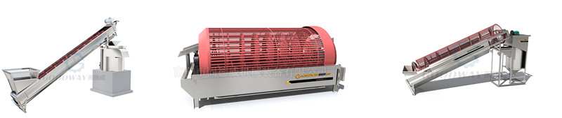 三、 工藝介紹 : 1、 清洗工藝及設備主要是清除物料外表皮層沾帶的泥沙, 并洗除去物料塊根的表皮,去石清洗機是要去除物料中的硬質雜。對作為生產淀粉的原料進行清洗, 是保證淀粉質量的基礎,清洗的越凈,淀粉的質量就越好。輸送是將物料傳遞至下一工序,往往輸送的同時也有清洗功能。常用的輸送、清洗、去石設備有:水力流槽、螺旋清洗機、斜鼠籠式清洗機、漿葉式清洗機、去石上料清洗機、(平)鼠籠式清洗機、轉筒式清洗機、刮板輸送機等。根據土壤和物料特性可選擇其中的一些進行組合,達到清洗凈度高,輸送方便的要求。