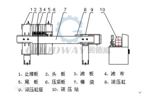 過濾方式 : 濾液流出的方式分為---明流過濾和暗流過濾。明流過濾,每個(gè)濾板的下方出液孔上裝有水咀,濾液直觀地從水咀里流出。暗流過濾,每個(gè)濾板的下方設(shè)有出液通道孔,若干塊濾板的出液孔連成一個(gè)出液通道,由止推板下方的出液孔相連接的管道排出。