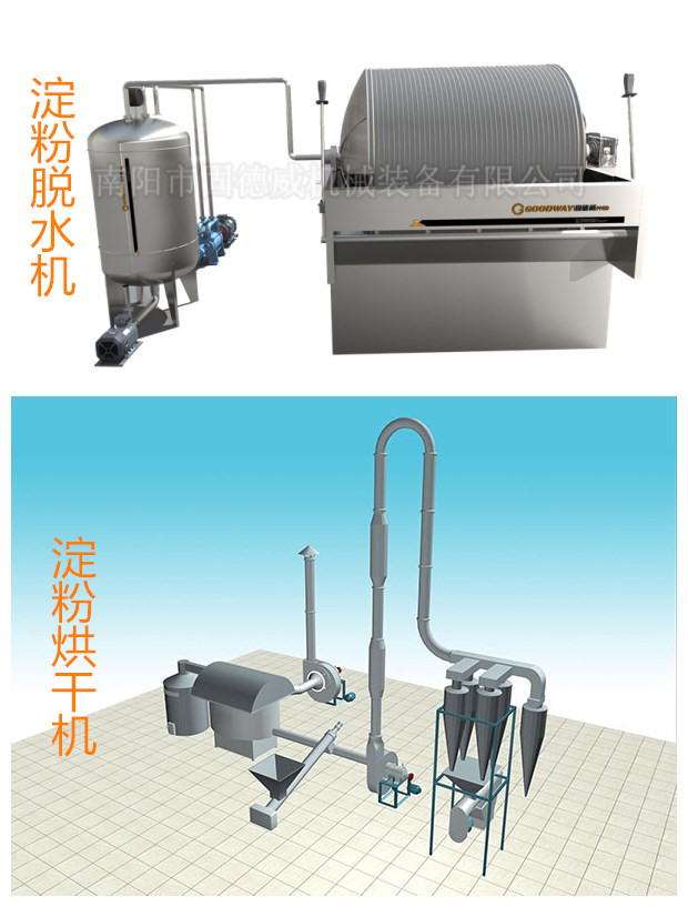 四 淀粉晾曬 經(jīng)過沉淀后的淀粉,抽去上面的廢水,把下面淀粉起出進(jìn)行晾曬,曬至七八成干后用棍棒研成細(xì)粉裝袋儲(chǔ)藏即可。這個(gè)過程一般勞動(dòng)力比較大,淀粉質(zhì)量還不高,此時(shí),我們可以選擇淀粉脫水機(jī)和烘干機(jī)進(jìn)行操作,工作效率高還節(jié)省人工,并且淀粉沒有經(jīng)過二次污染。